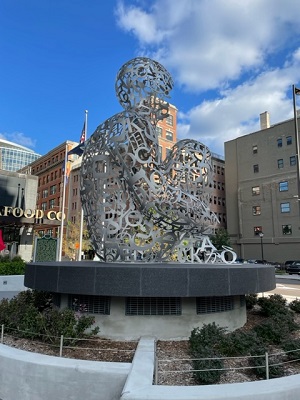 A demonstration was being held across the street from the conference hotel, in front of the City Club of Cleveland, so some attendees decided to join in on their lunch hour. (photo Laura Ross)