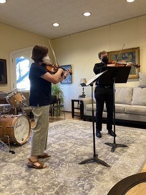 Members-at-Large violinists Sharon Yamada (NY Philharmonic - maroon top) and Kim Tichenor (Louisville - in black) joined the musicians to perform (photo Mike Muszynski)